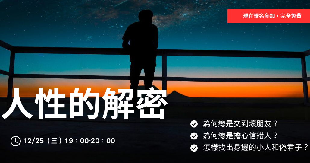 現在報名參加,完全免費 活動整場參加,贈送價值3000元的一對一的個人能力分析。